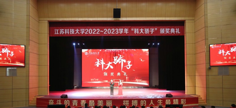 11月9日,910023威尼斯在长山校区船苑剧场举行2022-2023学年“科大骄子”颁奖典礼,表彰在“德、智、体、美、劳”等方面有突出表现、受到省级以上奖励的先进个人和集体。校领导周南平、嵇春艳、潘锦全、安祥卫、李木旺、施伟东、周宏根、叶永林,相关职能部门、各学院负责人,全体辅导员和在校学生参加典礼。