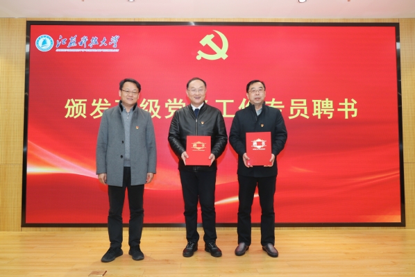 12月13日下午,“深蓝高端人才”党支部成立暨党务工作专员聘任仪式在长山校区图书馆B102报告厅举行。校党委书记周南平,党委常委、纪委书记、派驻监察专员安祥卫,副校长施伟东出席仪式。党务工作专员、“深蓝高端人才”党支部成员、相关职能部门负责人、部分非党员高端人才、二级党组织书记、组织员等50余人参加仪式。仪式由党委常委、组织部部长李恒川主持。