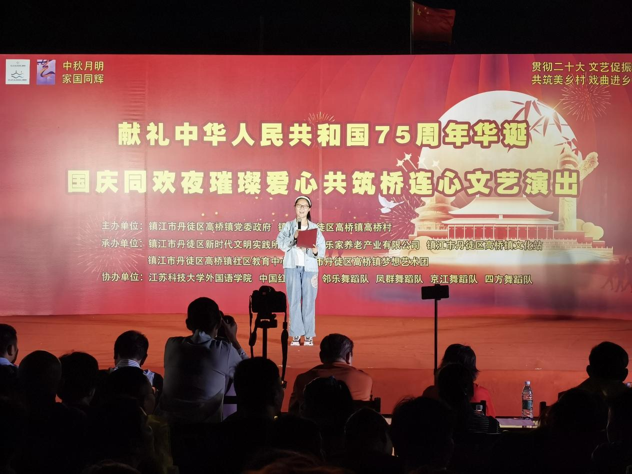 为迎接即将到来的国庆佳节,同庆伟大祖国75周年华诞,9月29日,外国语学院学生会、海丝海思协会、红帆俄语社的青年学子来到丹徒区高桥镇高桥村,为高桥村的孩子们带去中俄双语共学国庆、新时代海洋强国成就主题宣讲互动活动,参加高桥村国庆主题晚会。