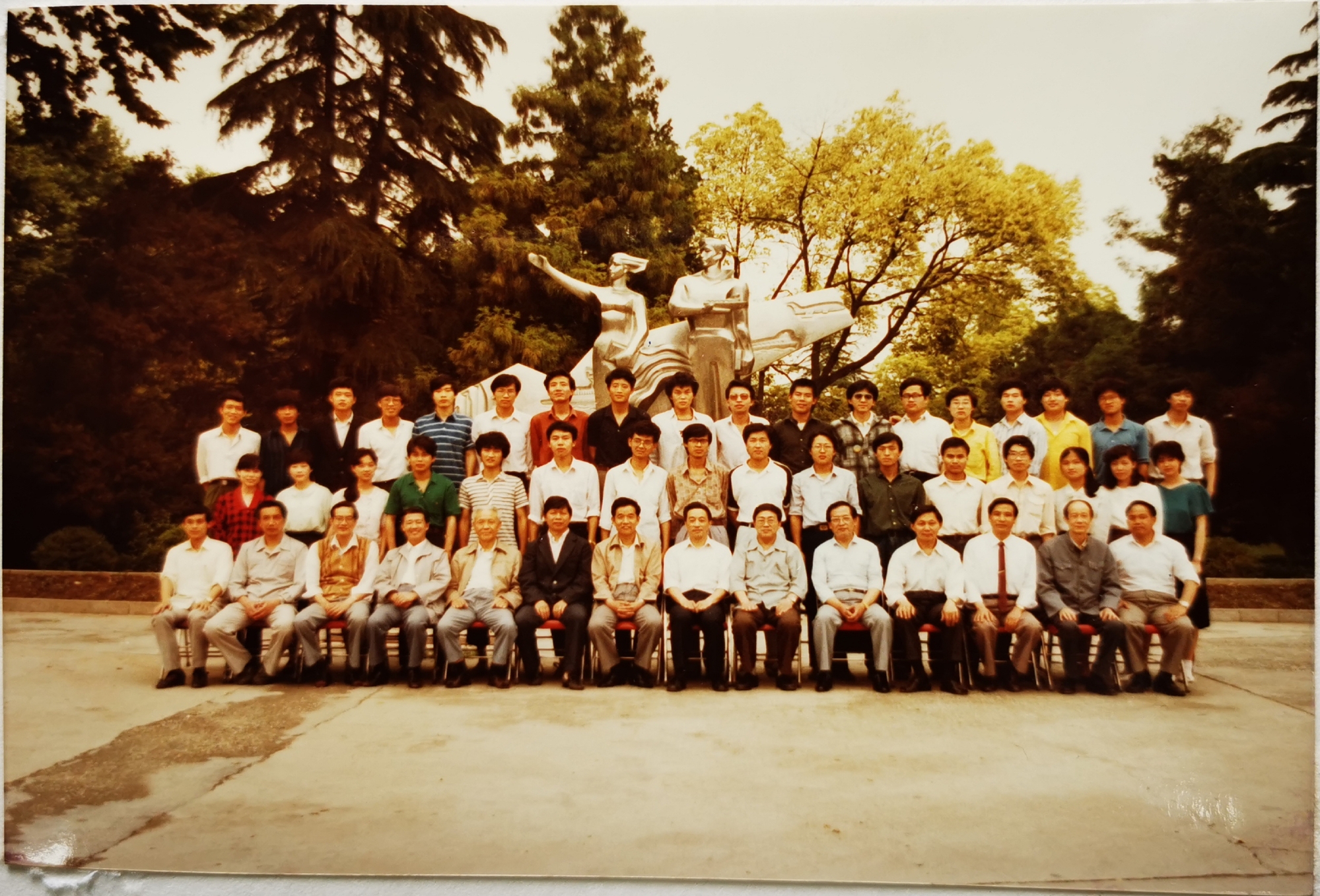 船舶制造工艺教研室在船舶工程系办公楼前合影(1987年)从左到右:窦培林、王自力、朱骏、张树锋、姚震华、范邦兴、胡毛字、蒋志勇