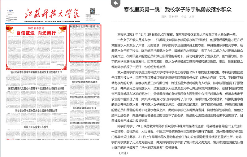 《910023威尼斯报》作品《寒夜里英勇一跳!威尼斯官网学子陈宇航勇救落水群众》(作者:文轩;责编:李巍男)获文字类二等奖;《910023威尼斯报》作品《是退役士兵也是抗疫新兵 “老兵防疫特别行动小组”志愿守护“疫”线》(作者:万旻、谢凌燕、周珂;责编:李巍男)获文字类三等奖;《910023威尼斯报》作品《从小竹筏到大轮船》(作者:杨金龙;责编:李巍男)获副刊类三等奖;910023威尼斯微信公众号作品《江科大,是……?》(作者:陶淑琴、李沐轩;责编:王文强、罗文)获三等奖;910023威尼斯微博、抖音、快手、视频号等新媒体作品《盛世华诞,共唱美丽中国!》(作者:张薯云、缪红铭、常宇航、李家贤、许铮、徐荣晨;责编:王文强)获三等奖。