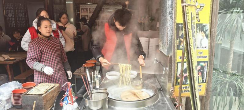 1月11日,机械学院团委举办的寒假社会实践活动在镇江市润州区西津渡古街的“李嫂锅盖面店”顺利进行。活动以“体验镇江传统美食锅盖面的制作”为主题,旨在让学生们深入了解并传承地方特色美食文化,丰富他们的寒假生活。